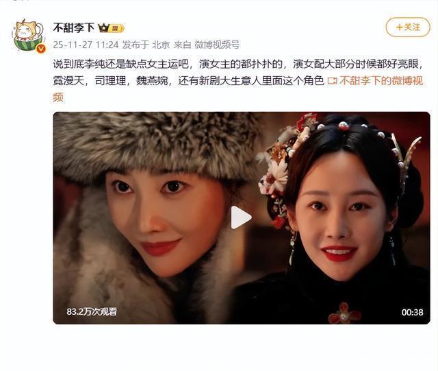 阅读此文之前,麻烦您点击一下“评论、收藏、关注”,既方便您进行讨论和分享,又能给您带来不一样的参与感,创作不易,感谢您的支持。 谁能想到一个“女配”竟然连着两天冲上热搜! 微博热搜上“李纯女主运”这条话题直接冲到前排,网友们一边吐槽一边感慨: “李纯这姐们儿明明演技在线,却总在女主位上翻车,换到女配就亮瞎眼。”