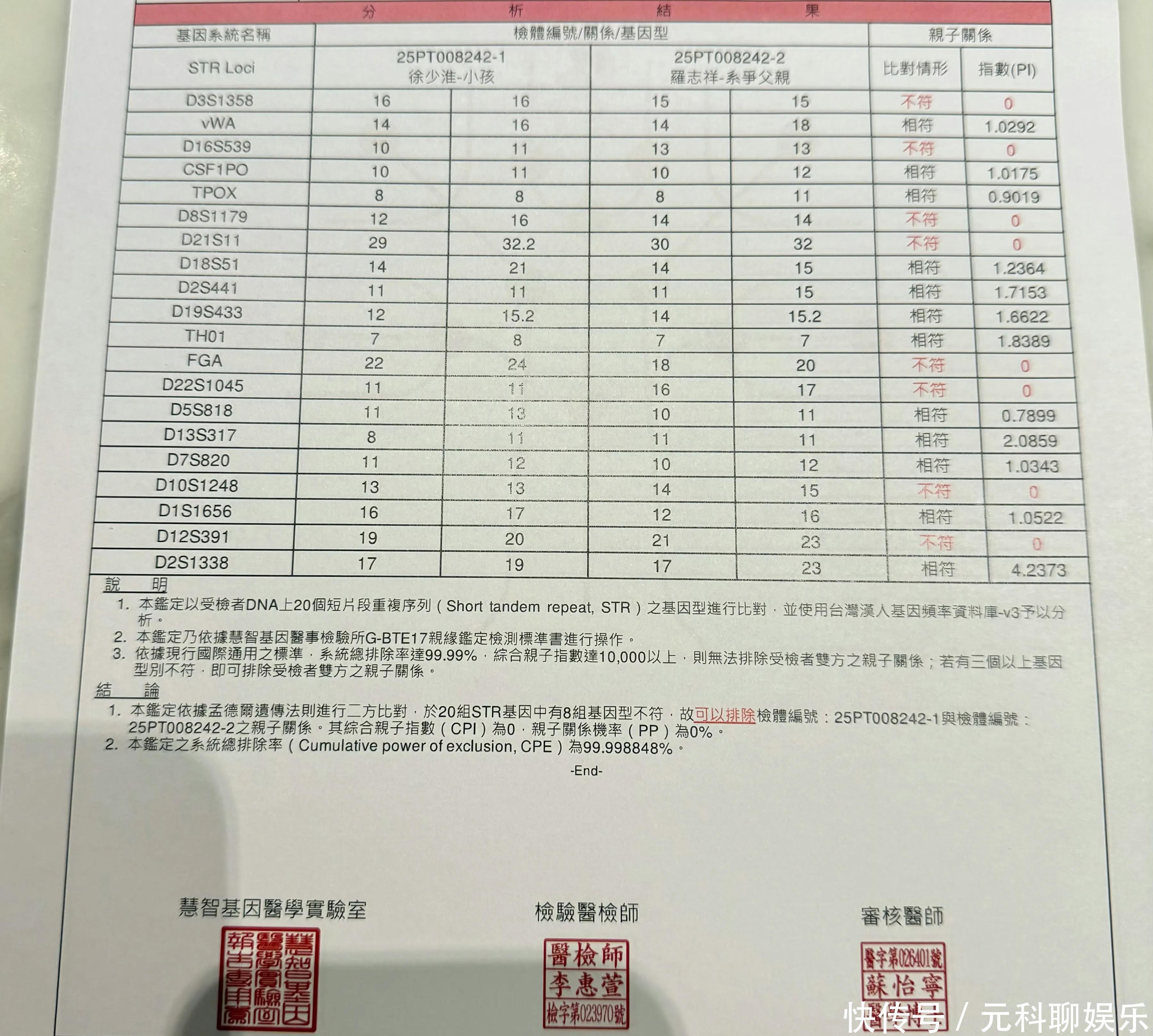 就在大家以为实锤的时候,小霜11月26日直接甩出亲子鉴定报告,硬核辟谣!报告写得明明白白:20组STR基因8组不符,亲子关系概率0%,系统排除率99.99%,科学锤死没关系!还坦言孩子是自己42岁时通过试管技术生的,和罗志祥半毛钱血缘没有~